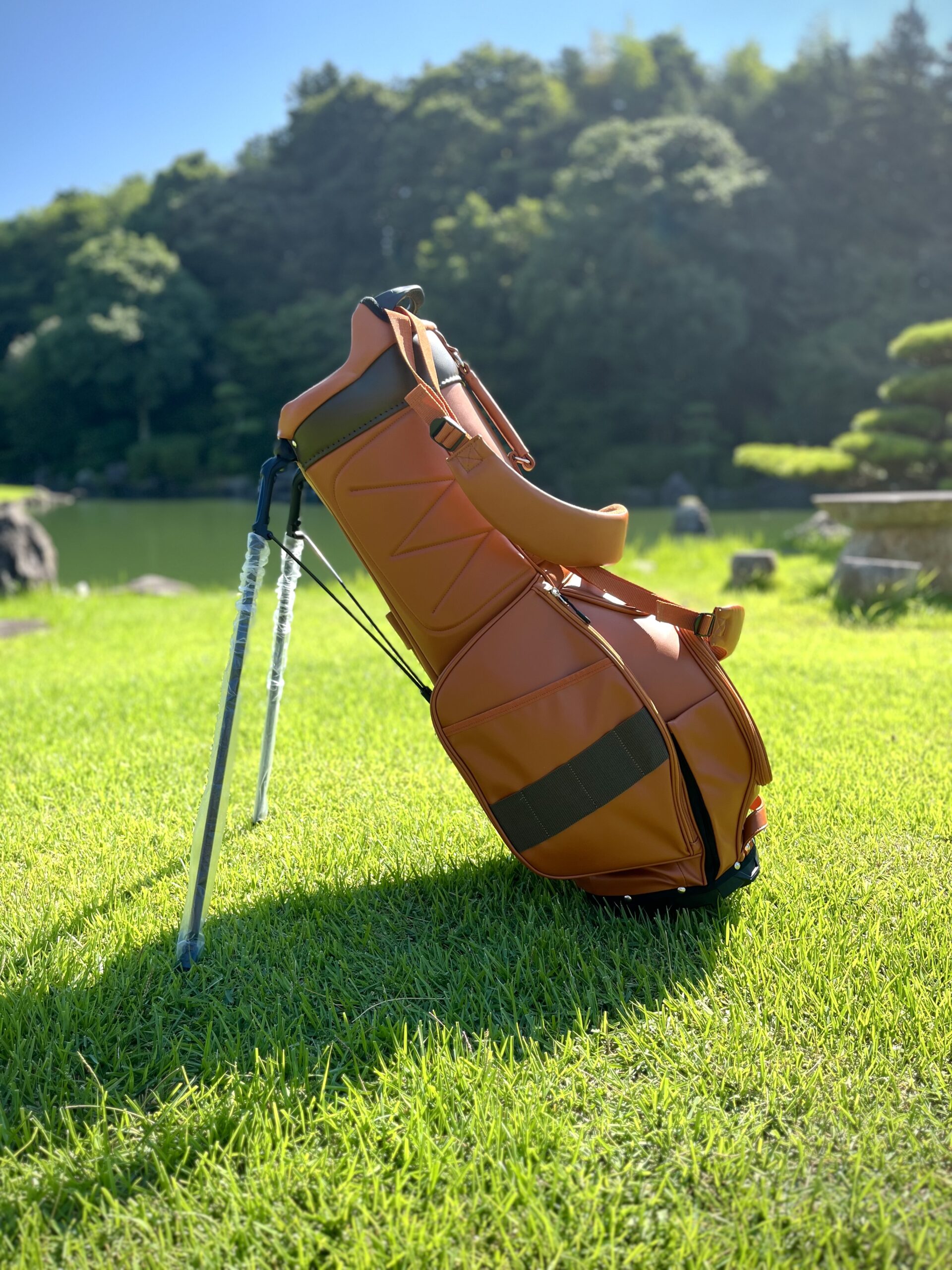 美しいオレンジのキャディバッグです。