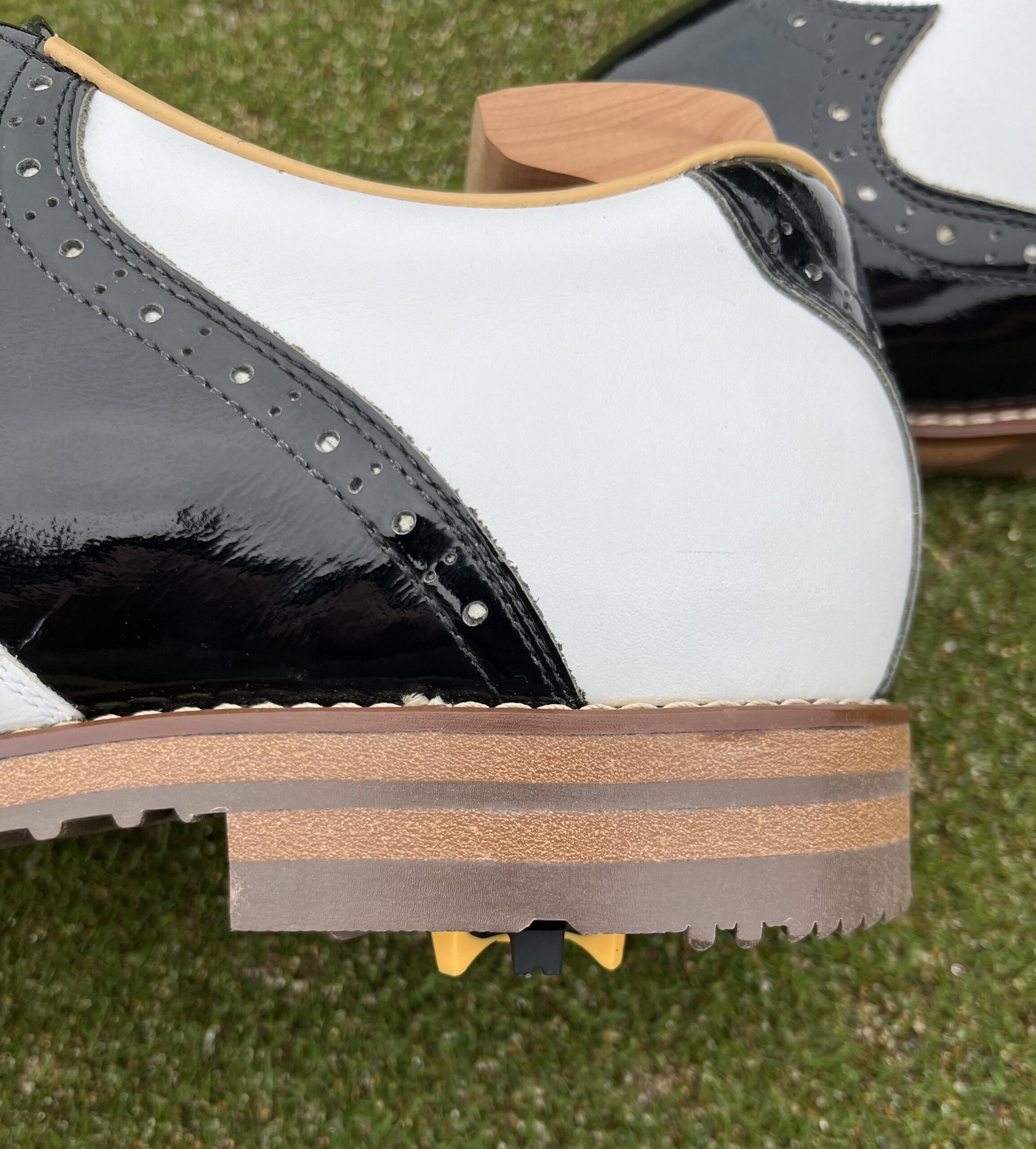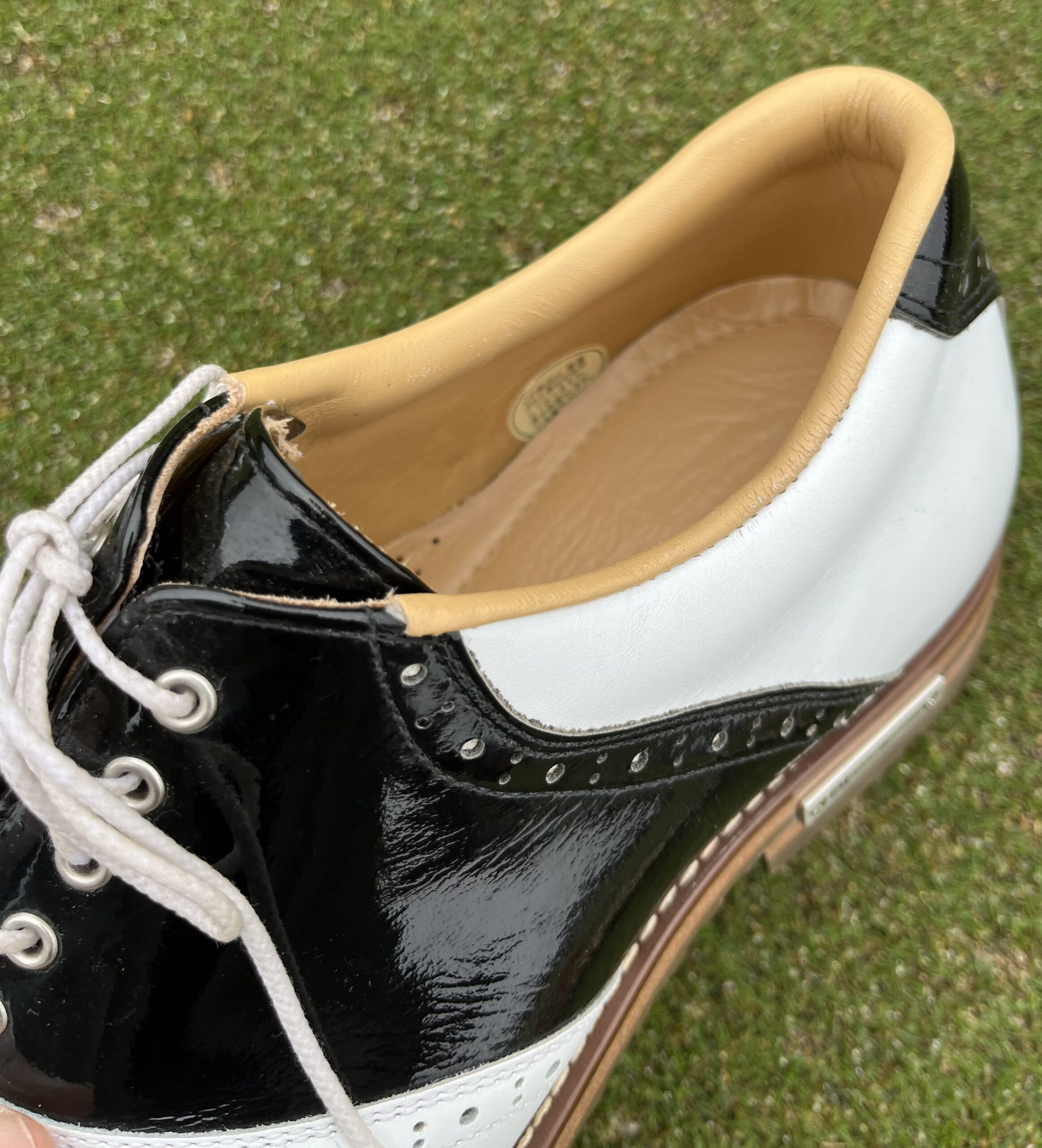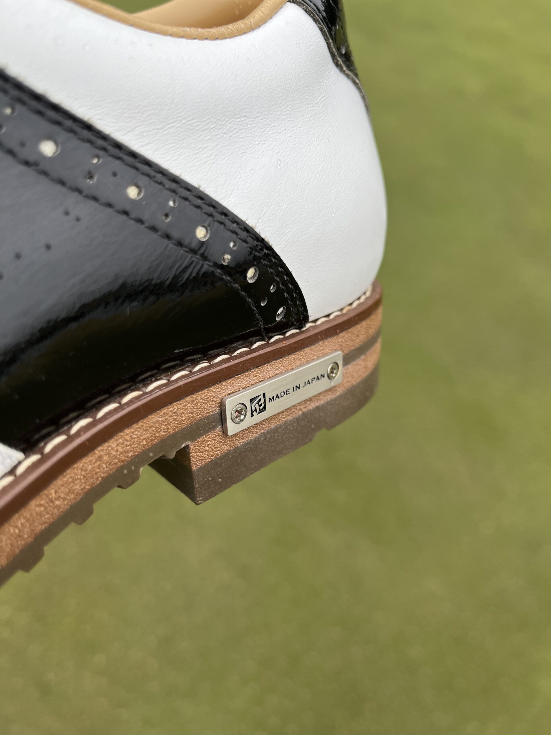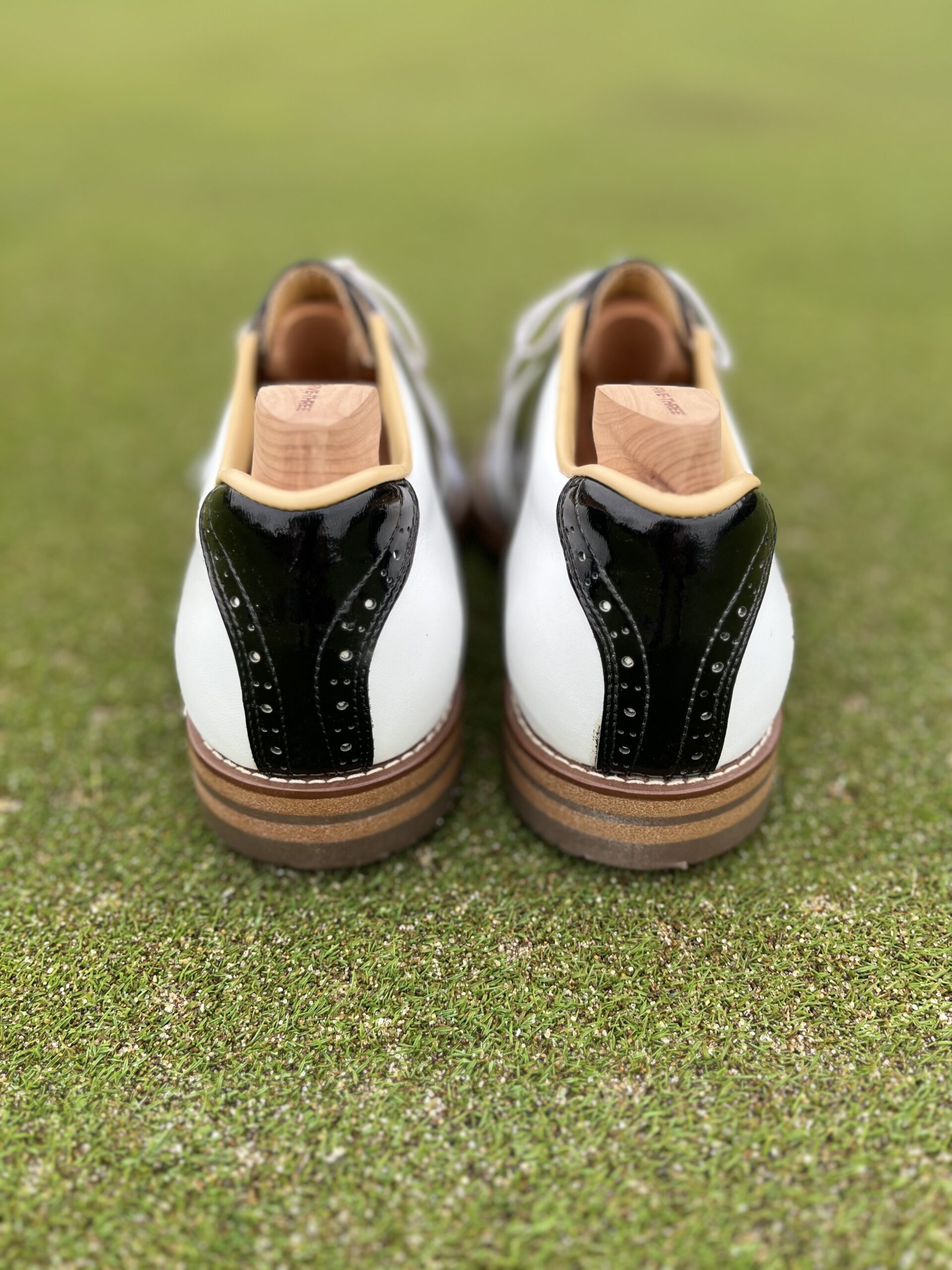 ご注文いただいたスニーカーはシュリンクレザーのホワイトにクロコ型押のネイビーを合わせた、シンプルで爽やかな雰囲気に仕上がっております。