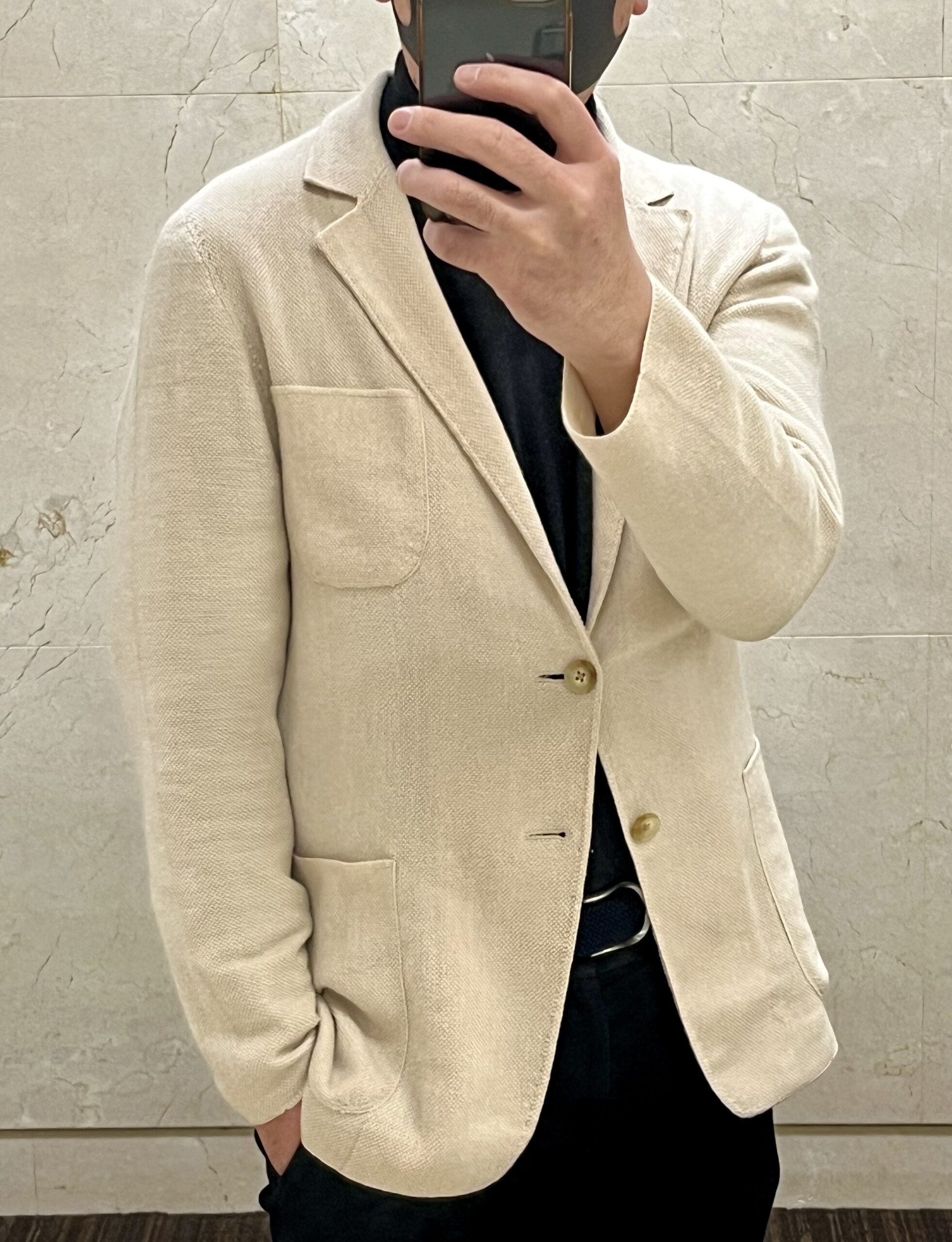 ですので、まるでカーディガンのようなラフで柔らかく、しわにならずにとても着心地の良いジャケットなのでございます。